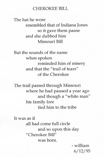 The poem tells how I got the name Cherokee Bill. For his