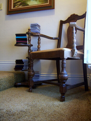 Much of the upstairs at the Center is taken up by my work areas. But, it is also home to the "a touch of william" studio gallery, Cherokee Bill's Teaching Center including the Cherokee Heritage & Arts display (shown on its own separate page), and some casual areas. The permanent gallery displays works of various artists as well as my own "out of print" enlargements. A unique piece hanging above the stairs is an original advertisement poster for "The Sound Of Music," given to me in the year of its release by my uncle who owned the theater where I worked as a teenager; after he was done displaying it during its run. There is plenty to see and learn about upstairs. |
