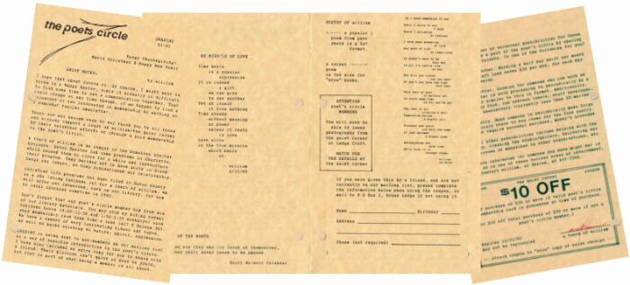 I hope that about covers it. Of course, I might want to throw in a Happy Easter, since it normally is difficult to find some time to put a communication together. That could change at any time though, if we happen to find a volunteer or two interested in membership by working on a somewhat regular newsletter. There are not enough ways to say thank you to all those who already support a touch of william/the quiet corner by their volunteer efforts or through a paid membership in the poet's circle. a touch of william is no longer in the homeless shelter business. Eaton Shelter had some problems in Charlotte, which caused them to close for a while and restructure their program. They decided not to have units in Grand Ledge any longer, so they discontinued our relationship. christian life programs has been filed in Eaton County as a dba (doing business as) for a touch of william. We will offer our resources, such as our library, for use to local churches sometime in 1993. Do not forget that any poet's circle member has free use of our library materials. You may stop by during normal business hours (9:00-12:30 and 1:30-5:30 weekdays) show your membership card then take a look (417 S Bridge St). We have a number of very interesting videos and tapes, as well as books relating to nature, spirit, expression. SHARING is being sent to non-members on our mailing list as a way of possible introduction to the poet's circle. I have also included an extra copy for you to share with a friend. Their discount is not quite as good as yours, but that is part of what being a member is all about. (My poems "The Miracle Of Love" and "Do I Have