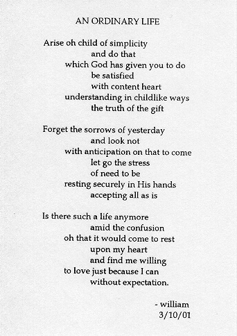 These poems are referred to as signature poems because they sum up why I do what I do, and are representative of the philosophies presented in my work. For many years "The Rose And Her Thorns" was my primary flagship poem, particularly when coupled with the photo "Rose After Rain." They can both be found through the P&P index page. That poem was replaced in 1991 when "Be Not Afraid" became a guiding mantra to live by, while recovering from turbulent times in my life, and facing new challenges in changing circumstances. The others were added later, not only to inspire readers, but to help keep my own perspective on track. |