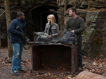 I did a DuckDuckGo (I use https://start.duckduckgo.com rather than Google) search for Red Dawn 2012 Photo Galleries when I decided to do this addendum page. I had thought about trying to get the movie companies permission to copy some stills from our Red Dawn DVD to show a few Grand Ledge moments, but decided to abandon the concept altogether when I thought about what might already be out there on the Internet. The four images (obviously not my photography because they are from the movie) here showed up on multiple pages of the over three dozen sites I visited that said they had Red Dawn photos. This seemed to be pretty much the extent of Fitzgerald Park shots, except for one which showed the mining cart tracks. That one, however, only showed up on one stock photo site where images had to be purchased, not simply shared. You should be able to recognize the backgrounds from the Red Dawn at Fitzgerald Park page. Plus, as a bonus, one of the four shots is a moment I spoke about with two of the stars on the bridge. |