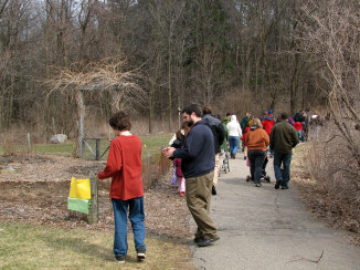 look for sap in the buckets hanging on the maple trees. Then wander to the