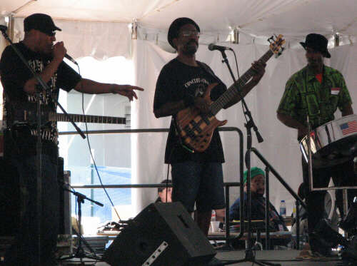 On the way to the food court, we passed by the Dance stage where Roots Vibration (Reggae) was playing. Though it was quite a change from the Indigenous displays we had come from, we would not have another opportunity to hear their music, so I stopped for just a moment to listen and take this photo. OK. Let's break for lunch. In the interest of keeping these pages from getting way too long, so they open more easily for you, this will end the first page. When you are ready, click on PAGE TWO to see about lunch and the rest of Saturday's agenda. |