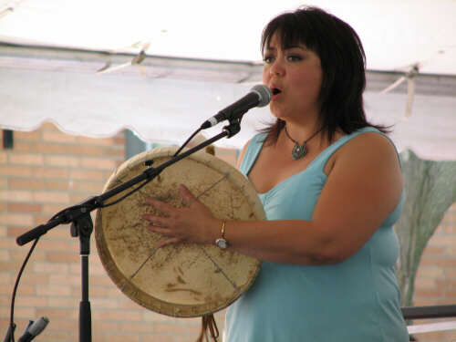 The first group we went to see, after eating, was Asani (First Nation & Metis vocals) from Edmonton, Alberta in Canada, another favorite. The women in this trio are "steeped in their musical, cultural and linguistic traditions." Wherever you've seen quotation marks it usually denotes an excerpt from the festival's program. Each group or artist is described there. Unfortunately, I do not have the space (or the typing skills) to include the extensive information provided. |