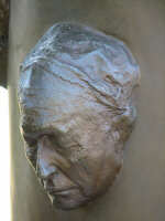 We took our food to the park area at the corner of Albert and Abbott and had a picnic. There is a fountain and an interesting sculpture in the park. The sculpture is called Familiar Faces by Louise McCagg. As a fellow (whose mother's face appears on the artwork) explained to me, the faces are of area individuals who were strong supporters of the arts. Good food, good weather, and pleasant surroundings - amen. |