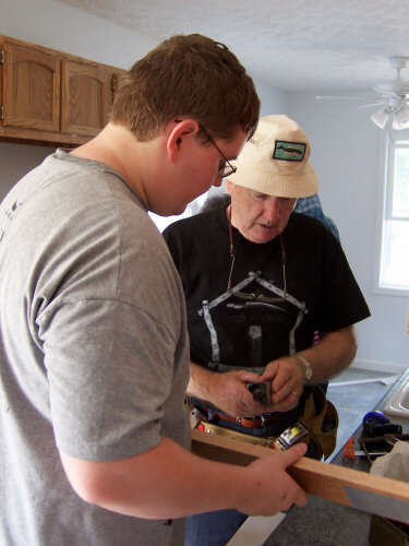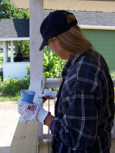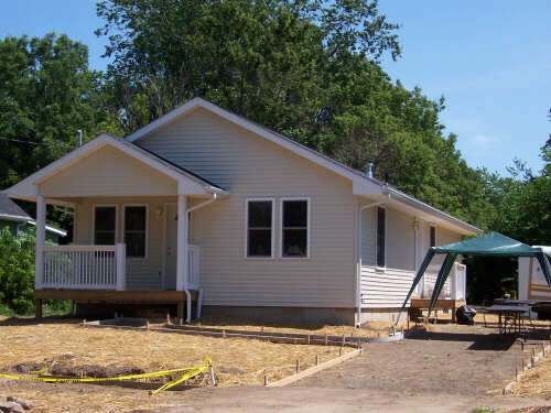 I showed up a little bit early on Dedication Day, so I could take some pictures (above left, immediate left, and the rest below) of the finished product before many people started arriving. If you have visited each of these HFH pages, you have journeyed with us and seen the transformation. In 2010, I reformatted the gallery pages and relived the steps of combining tools, materials, lots of volunteers, and a few dedicated leaders into the creation of a family home. It is a pretty marvelous thing to behold. It is an even better experience to participate in, and I encourage you to do so. When I revised these pages in 2010, I shifted the photos of the people at the dedication to a separate page. The cake picture is the link to that page. |
