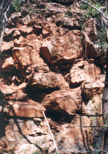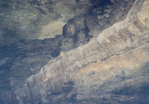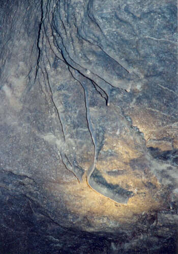 and rocky sides of the ravine, then enters a cavern 150 ft. wide at its