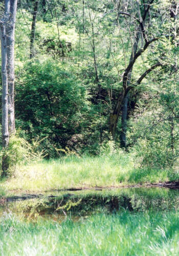 rising at once full grown, flows about 300 yards, enclosed by the steep