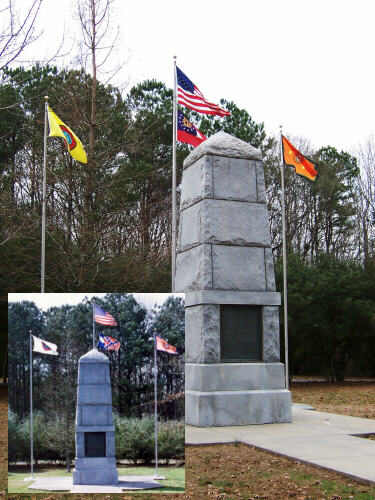 ![]() The inset in the monument photo at left is from 2000. The main photo was taken in 2005. Did you notice the difference in the flags? I had not until I was working on these pages. The Confederate Bars & Stars were still flying in 1998 and 2000. |