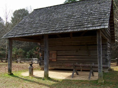 Cherokee farmstead of the early 1800's. A Cherokee building, probably a store