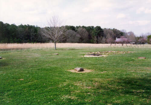 The same sign from which Harriet's information was taken, tells us, "Elias Boudinot was a leading Cherokee of the 1820's and 30's. He served as the first editor of the CHEROKEE PHOENIX and also translated many books, religious tracts, hymns and pamphlets into the Cherokee language. Boudinot became a leading member of the treaty party who supported removal to the west. He was killed in 1839 by Cherokees who opposed the Treaty of New Echota." The SGT brochure/map starts the same then adds a little more. "Elias Boudinot was a leading Cherokee of the 1820's and 30's. He served as the first editor of the CHEROKEE PHOENIX and also translated and published many religious tracts, books, and pamphlets into Cherokee. Boudinot constructed a large two-story frame house on this site in 1827. The four stones mark the approximate locations of the corners of the house. The well is original and the square area enclosed by rocks is the cellar site. The kitchen was separate from the house and built over the cellar. Nearby was a garden, orchards, and several outbuildings. The Treaty of New Echota was signed in the Boudinot House on December 29, 1835 by twenty Cherokees. Although it was never endorsed by the Cherokee government and was considered fraudulent by many Cherokees, the treaty was ratified by Congress and used as justification to forcibly remove the Cherokees in 1838. Boudinot was assassinated in 1839 by Cherokees who opposed the treaty." |