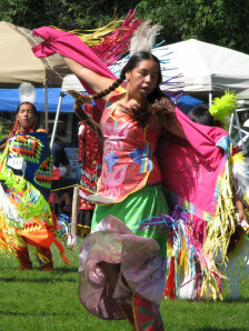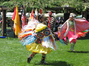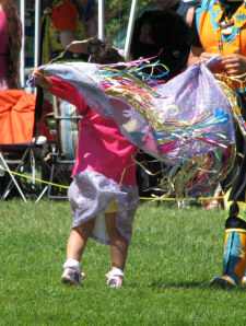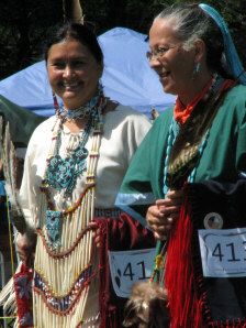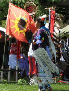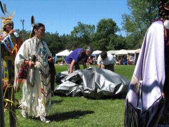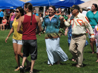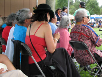 The removal of the tent was completed, and the elders got settled in with us (above left), without any significant interruption of the dancing. But the wind continued to blow and gust, as several of the pictures will attest to. |