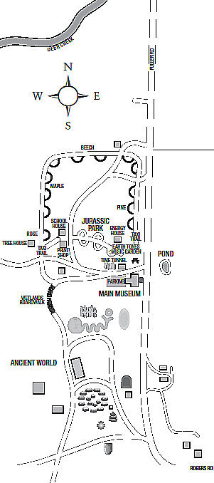 As I left the Schoolhouse, I passed by the Print Shop. I did not stop, other than to take a couple of pictures (seen on the School page) of the exterior. Next was the Exploring Beyond Jurassic Park walkway/exhibit which would bring me back toward the Earth Tones Music Garden and closer to the museum. Doug likely had been expecting me for some time. |