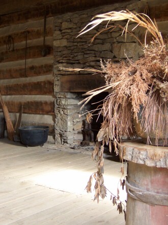 Donna and I have visited Red Clay twice. The first time was on December 30, 2004. I was transitioning from 35mm photography to digital by then. The above three shots are the only 35mm pictures I took at Red Clay. All the rest were taken with my digital cameras (Kodak in 2004). "Red Clay State Historic Area, located in southeast Tennessee on the Tennessee-Georgia border, encompasses 260 acres of forested ridges bordering a narrow valley formerly used as cotton and pasture land. The site contains a natural landmark, the great council spring or blue hole, which rises from beneath a limestone ledge to form a deep pool that flows into Mill Creek. The spring was used by the Cherokee for their water supply during council meetings." The James F. Corn Interpretive Facility which "contains exhibits on the 19th century Cherokee, the Trail of Tears, and prehistory, Cherokee art, a video theater, gift shop and a small library," was closed the first time we traveled to Red Clay, since we were there the week between Christmas and New Year's. It is the primary reason we returned on March 27, 2010. Except for these first photos of the inside of the log cabin, all of the indoor images are from our second visit. These interior shots were taken through windows. |