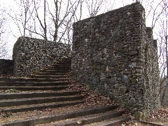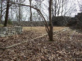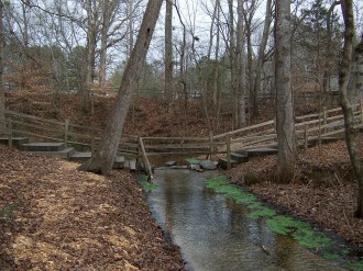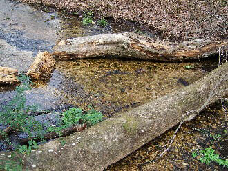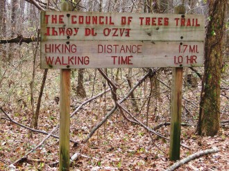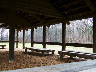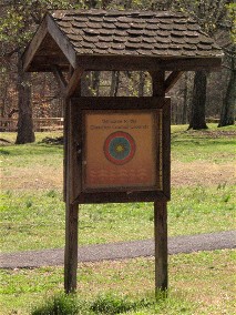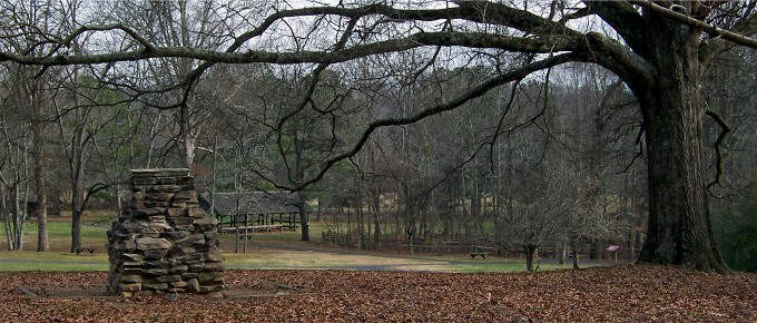 In 2004, after spending some time by the spring, we took a long walk on "The Council Of Trees Trail" before coming back to take a look at the Council House. We did not walk beyond the immediate interpretive area in 2010. Our visit was much shorter that year. All of the pictures in this section are from that 2004 visit. The map showing the layout of Red Clay State Historical Park is courtesy of the Tennessee Department of Environment and Conservation. |