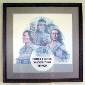 "In April of 1984, the first joint council meeting of the Cherokee Nation and Eastern Band of the Cherokee Indians was held at Red Clay. To reaffirm Cherokee unity after 146 years of separation, an eternal flame was placed at the site of the original Cherokee Council house." |