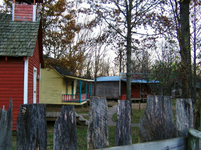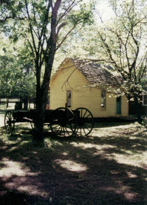 A self-guided tour of Adams Corner Rural Village is included in general admission to the Cherokee Heritage Center. Unfortunately, I did not have enough time on either visit to fully explore this piece of the CHC. And I did not take many inside pictures. In fact, I think things were already locked up by the time I got over to it in 2004. Most of the text on this page is courtesy of the CHC (cherokeeheritage.org) website. Adams Corner Rural Village "is a collection of seven buildings representing a typical rural Cherokee community and life in the 1890s before Oklahoma statehood. The replicated small settlement officially opened June 15, 1979. At first glance, 1890s community life appears to be tranquil to our modern eyes. Yet, the era was actually a turbulent time as had been several other threatening decades such as the 1830s with the Cherokee Trail of Tears, and the 1860s with the Civil War as experienced by the Cherokee Nation. |