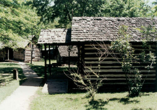 The Adams Corner Traditional Log Cabin represents the home of a 19th century family that preferred the old ways. They would have believed that a less commercial life, a more natural way of living, was superior to most modern adaptations. They would have believed that their ancestor’s ways should be honored and practiced. They sang old songs, made their own clothes following an older style, furnished their homes with crafts they continued to practice. They engaged in the ceremonial life they had been taught, and ceremonial materials might be seen in their homes. In the early days of settlement, log cabins were more common because people were moving into an area without any commerce. There were no sawmills, no general stores, no railroads to bring in materials. The cabin might have been built before there was a road. By cutting down logs for house construction, a farmer was simultaneously clearing land for crops and helping create roadways. Simple tools were all that were needed: an axe could do it all, but the added use of an adze and a saw would provide a more handsome dwelling. If the family had purchased a window and brought it with them, it would brighten their home. The walls, floors, shingles, and doors would all be wood. A fireplace could be built of native stone, or wood could be used if the interior of the chimney were coated with clay to prevent it from catching on fire. Chairs could be whittled and rush seats could be made. A peg on the wall became a closet, and the fireplace provided a cooking space. Mattresses were stuffed with corn shucks. In the early days, game was plentiful, along with wild fruits, nuts, and roots. According to Cherokee folklore, human illnesses started when humans became disrespectful of the animals they hunted, causing the animals to inflict the humans with sickness, but the plants took pity on humans and decided to provide medicines to relieve sickness. Many traditional Cherokee people have retained knowledge of the plant medicines which have healed and comforted countless generations of Cherokee citizens. Many of today’s modern medicines are derived from plant extracts, some of them the same plants that comforted our ancestors." |