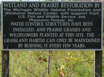 Woldumar's mission is to educate people about the natural environment. "Woldumar's 150 acres provide many natural environments. The prairie with its wildflowers, the Grand River flowing along 1.25 miles of riverbank, the hardwood forest containing beech and maple trees, the old apple orchard where deer come for dessert, offer a variety of habitats for native plants and animals. Visitors to Woldumar can experience all these areas using the 5 miles of natural trails that are open to the public daily dawn to dusk. The grounds contain designed areas including a butterfly garden, xeric garden, and herb garden. Another garden is used as a nursery area where young trees are protected until they are large enough to be moved to their permanent homes on the grounds." I enjoy visiting almost every area of Woldumar. Each has its own distinctive feel. Some have changed dramatically over the years, while a couple have remained surprisingly much the same. Transitions are gentle, as each connects with the whole. |
