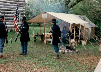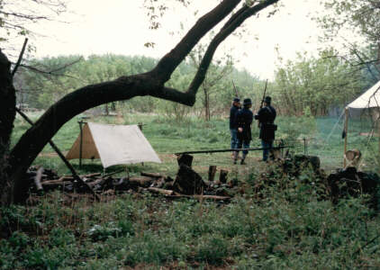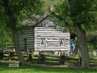 Speaking of the log cabin . . . The "Moon Log Cabin," originally located on Canal Road southeast of Mt. Hope, "was donated in the early 1980s and moved to Woldumar. One of the oldest residences in Eaton County, its restoration preserves the cabin to 1860 when it was first inhabited. It is the only known historic house of log construction in Eaton County that is being restored and preserved. Two stories high, the cabin is an impressive and well-built structure. Its State Historical designation requires any restoration must be done accurately, historically, verifiable to the time period in which the Moons lived in the cabin, and proven through writings or photographs. Volunteer docents provide historical information during special events." One of our friends was a cabin docent for a number of years, so we have had ample opportunities to visit and hear the history. It is well worth a trip to Woldumar during a festival, if you have never been in the cabin. I think, more than anything, I enjoy the basic smells and special aromas when the wood cook stove is fired up and somethin's-a-cookin' . . . The photo on the left (below), like the others, is from 1987 (May). The picture on the right was taken on May 10, 2008. You may click on either picture to see more images of the log cabin, inside and out. |