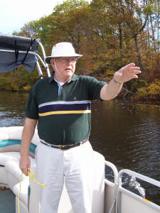 Most prominent on the opening page map, besides the river itself, is the large lagoon. As we move to the digital images below, I will begin with that area, then move to some pictures along the river taken during a ride on what was then a newly donated pontoon boat. The president of the board and a couple of staff members were about to take a test drive when I happened along and was invited to join them. Pontoon boat rides are often available during festival times. |