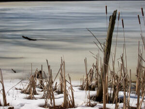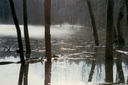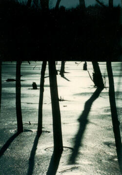 The Woodland Pond is not just about trying to see some wildlife though. Indeed, on many visits the pond area had nothing but its own beauty to offer to my camera. Flowers and plants, textures and reflections, give ample opportunities for great picture taking. This area is also one of the few where I do have some winter shots I can share with you. The first two are 35mm images taken in 1990 and 1991. From there we will continue on through more recent winters into warmer weather. |